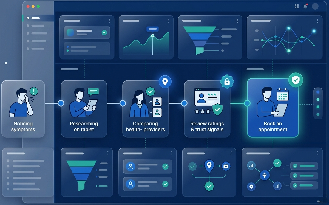 We don’t start with keywords. We start with how patients search, compare, and decide in your city.